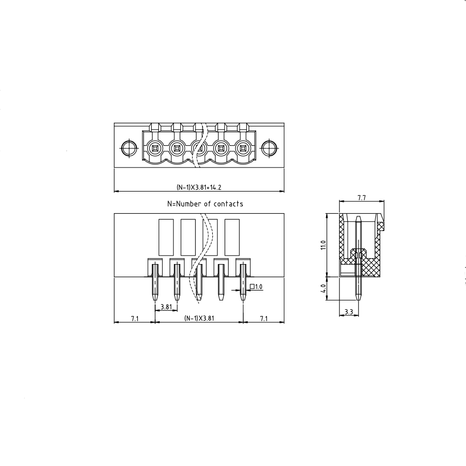 印刷线路板壳体, 额定横截面: 1.5 mm2, 颜色: 绿色, 标称工作电流: 12A, 额定电压(III/2): 160 V, 触点表面: 锡, 触点类型: 针式连接器, 电位数: 2-24, 行数: 1, 位数: 2-24, 连接量: 2-24, 产品系列: DB1EVM, 针距: 3.81 mm, 安装: 波峰焊, 针脚排列: 直线排列, 焊针[P]: 3.4 mm, 每个电势的焊针数量: 1, 插拔系统: COMBICON DB1EVM, 针式连接器样式对齐: 标准, 互锁: 不带, 安装: 不带, 包装类型: 纸箱包装