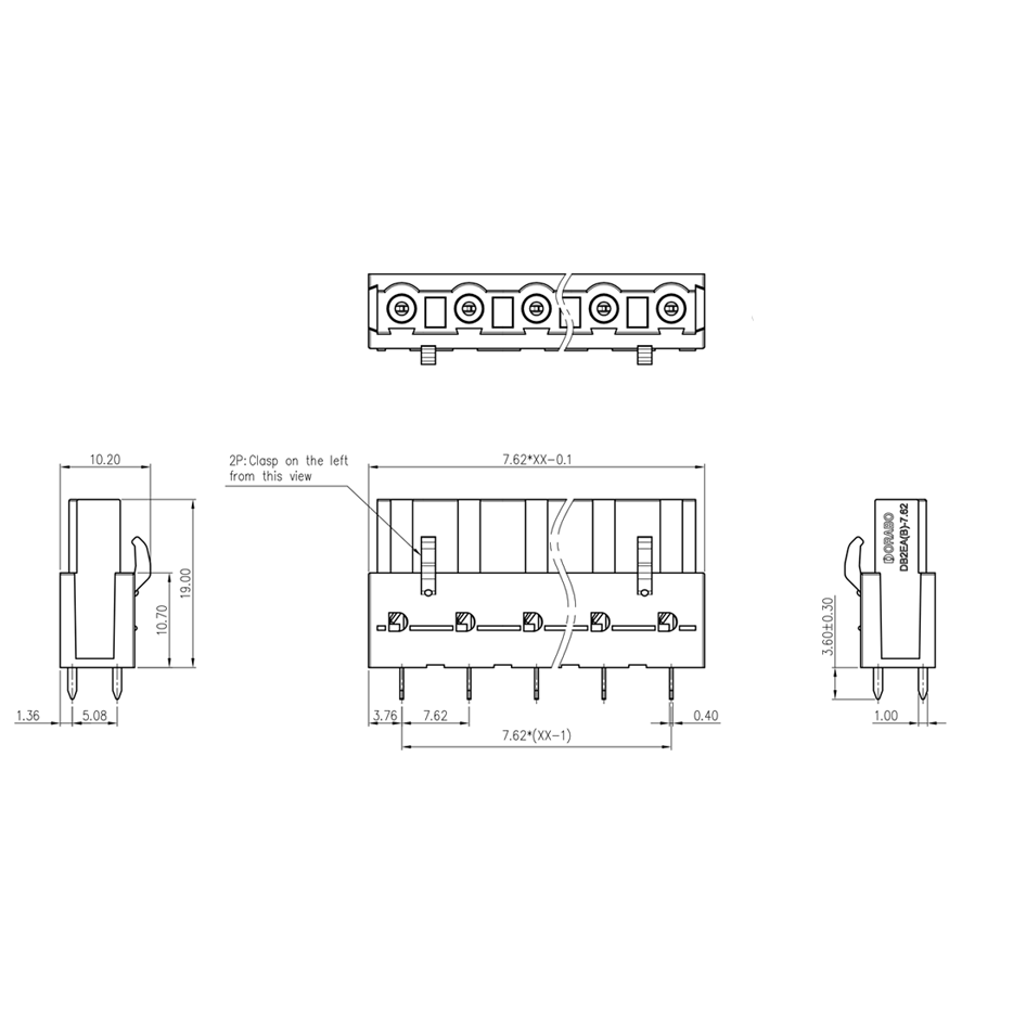印刷线路板壳体, 额定横截面: 2.5 mm2, 颜色: 绿色, 额定电流: 12 A, 额定电压(III/2): 630 V, 触点表面: 锡, 触点类型: 孔式连接器, 电位数: 2-16, 行数: 1, 位数: 2-16, 连接量: 2-16, 产品系列: DB2EB, 针距: 7.62 mm, 安装: 波峰焊, 针脚排列: 直线排列, 焊针[P]: 3.5 mm, 每个电势的焊针数量: 2, 插拔系统: COMBICON DB2EB, 针式连接器样式对齐: 标准, 互锁: 不带, 安装: 不带, 包装类型: 纸箱包装