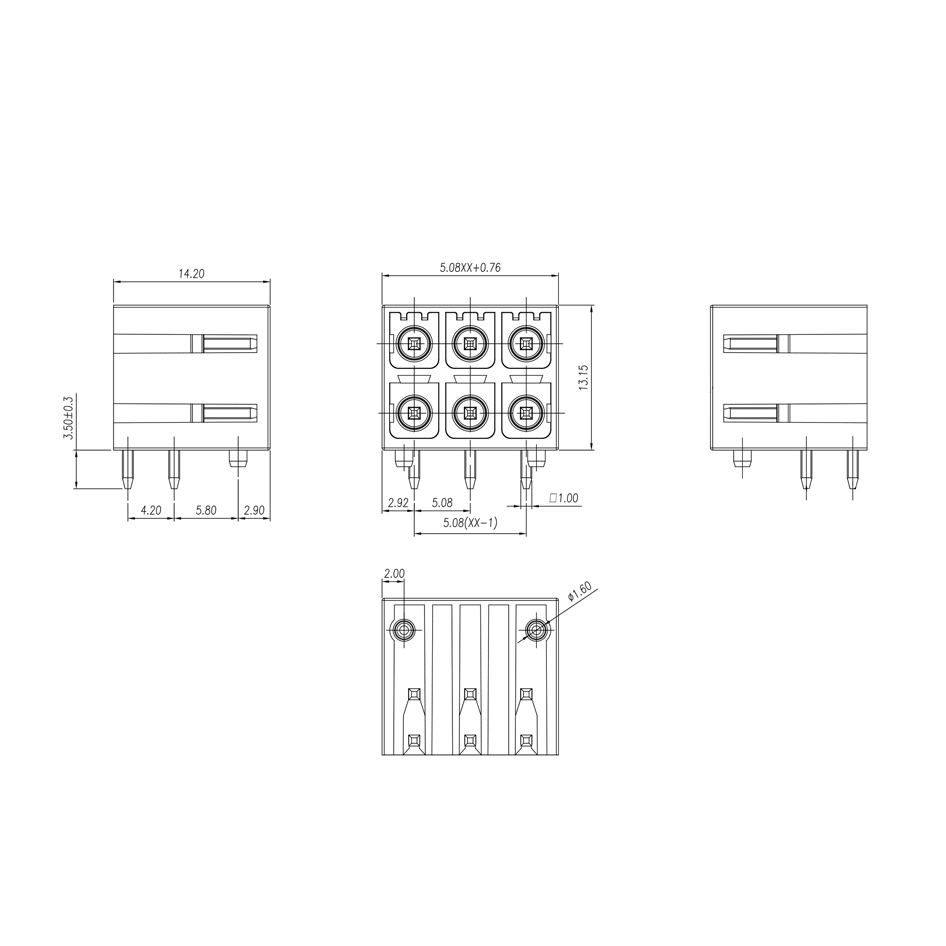 印刷线路板壳体, 额定横截面: 1.5 mm2, 颜色: 黑色, 额定电流:10 A, 额定电压(III/2): 300 V, 触点表面: 锡, 触点类型: 针式连接器, 电位数: 4-48, 行数: 2, 位数: 2-24, 连接量: 4-48, 产品系列: DB2ERHC, 针距: 5.08 mm, 安装: 波峰焊, 针脚排列: 直线排列, 焊针[P]: 3.5 mm, 每个电势的焊针数量: 1, 插拔系统: COMBICON DB2ERHC, 针式连接器样式对齐: 标准, 互锁: 不带, 安装: 不带, 包装类型: 纸箱包装