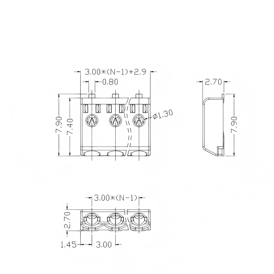 PCB 接线端子, 额定电流: 3 A, 额定电压(III/2): 160 V, 额定横截面: 0.5 mm2, 电位数: 1-3, 行数: 1, 每行位数: 1-3, 产品系列: DB2052, 针距: 3.0 mm, 接线方式: 直插式弹簧连接, 安装: SMD, 导线/PCB连接方向: 0 °, 颜色: 白色, 每个电势的焊针数量: 1, 包装类型: 卷装带式包装
