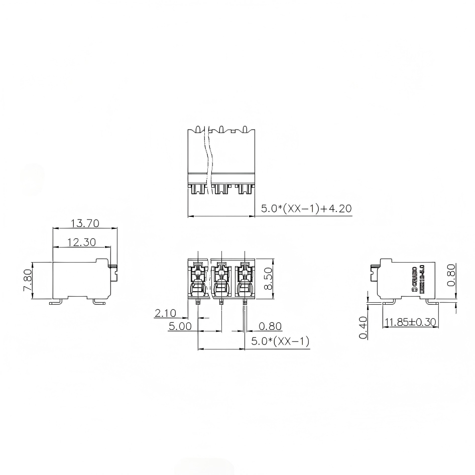 固定式连接器, 额定电流: 12 A, 额定电压(III/2): 320 V, 额定横截面: 1.5 mm2, 电位数: 2-24, 行数: 1, 每行位数: 2-24, 产品系列: DB212TR, 针距: 5.0 mm, 接线方式: 直插式弹簧连接, 安装: THR 焊接, 导线/PCB连接方向: 90 °, 颜色: 黑色, 针脚排列: 直线排列, 焊针[P]: 2.6 mm, 每个电势的焊针数量: 2, 包装类型: 纸箱包装